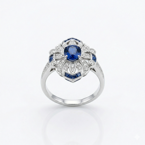 The central crimson element is multi-faceted using geometric step-cutting. This specific cut is designed to pull light into the heart of the stone, creating a "glowing from within" effect that is especially striking in the dim, cool lighting of evening events.